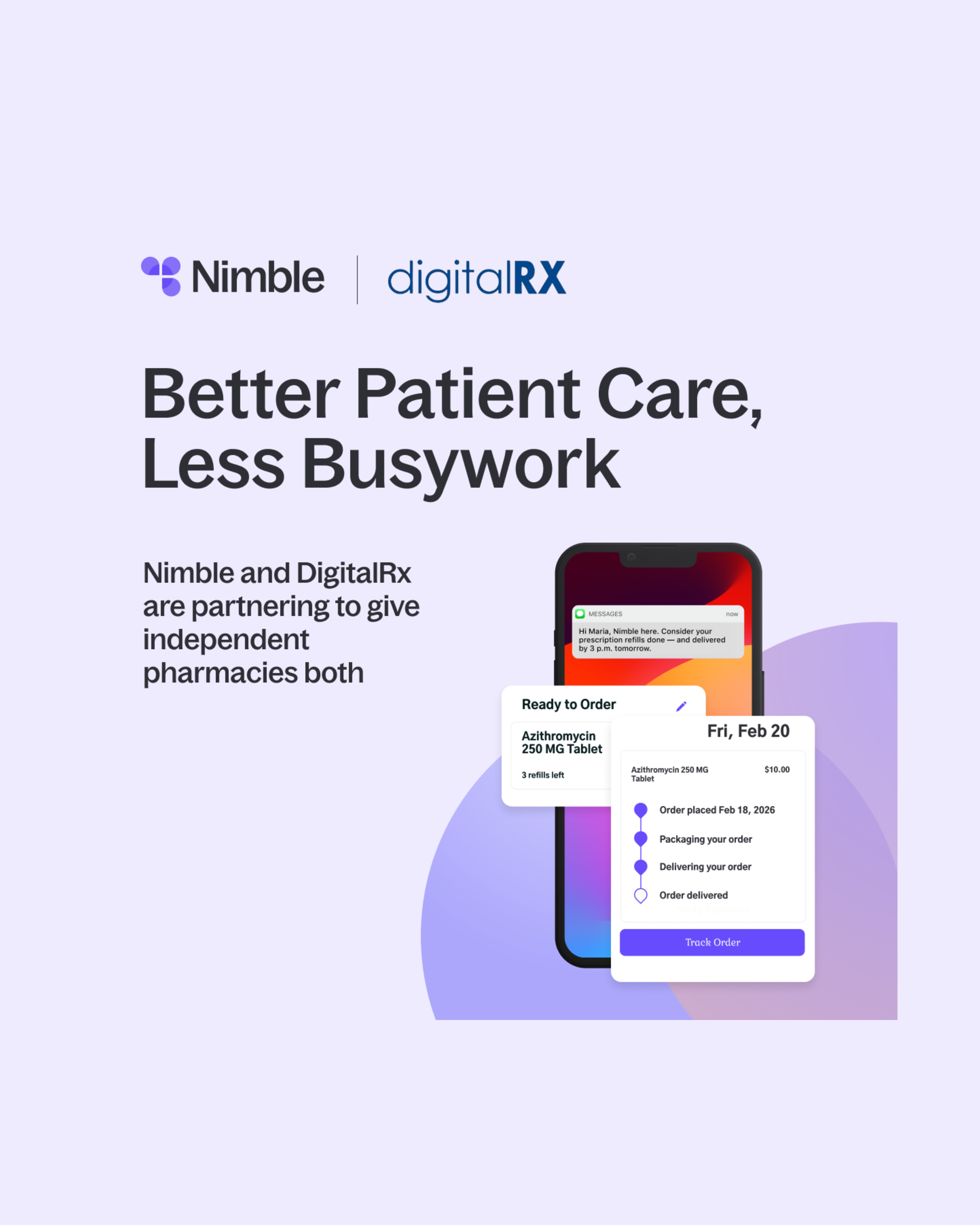 If you're a DigitalRx pharmacy and want to activate Nimble, schedule time with our team here. If you're already a Nimble customer on DigitalRx, you'll benefit from this partnership automatically as the deeper integration rolls out — we'll be in touch with details.