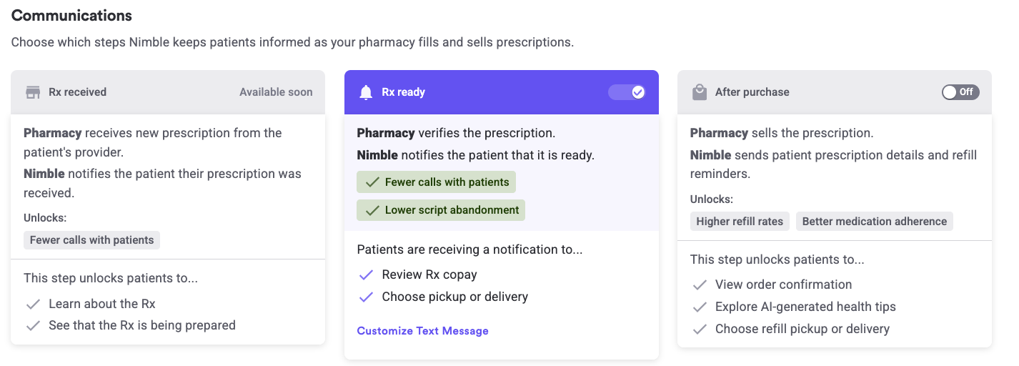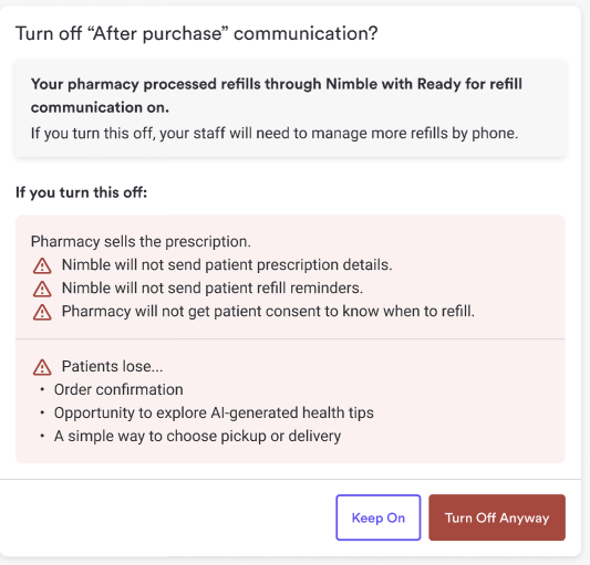 Think before you toggle: If you turn off After Purchase to stop refill reminders, you will also stop "Order Delivered" notifications and any other automated updates that occur after a script is marked as sold. It’s an "all-or-nothing" setting for that stage of the process.